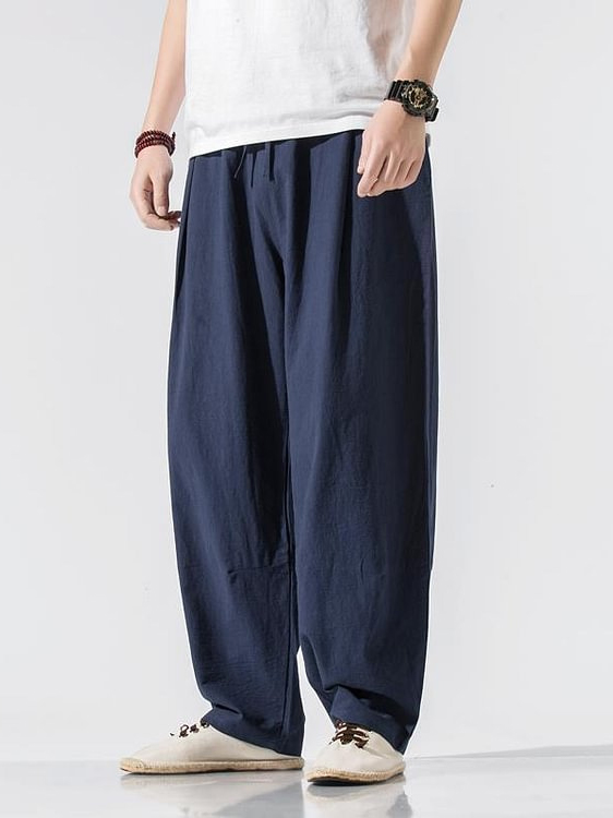• Men's Plain Loose Straight Leg Cotton And Linen Casual Pants